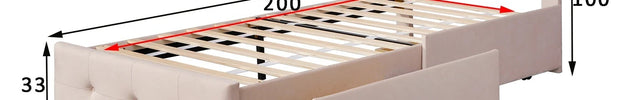 Lit 1 place 90x200 avec tiroirs de rangement – Velours capitonné