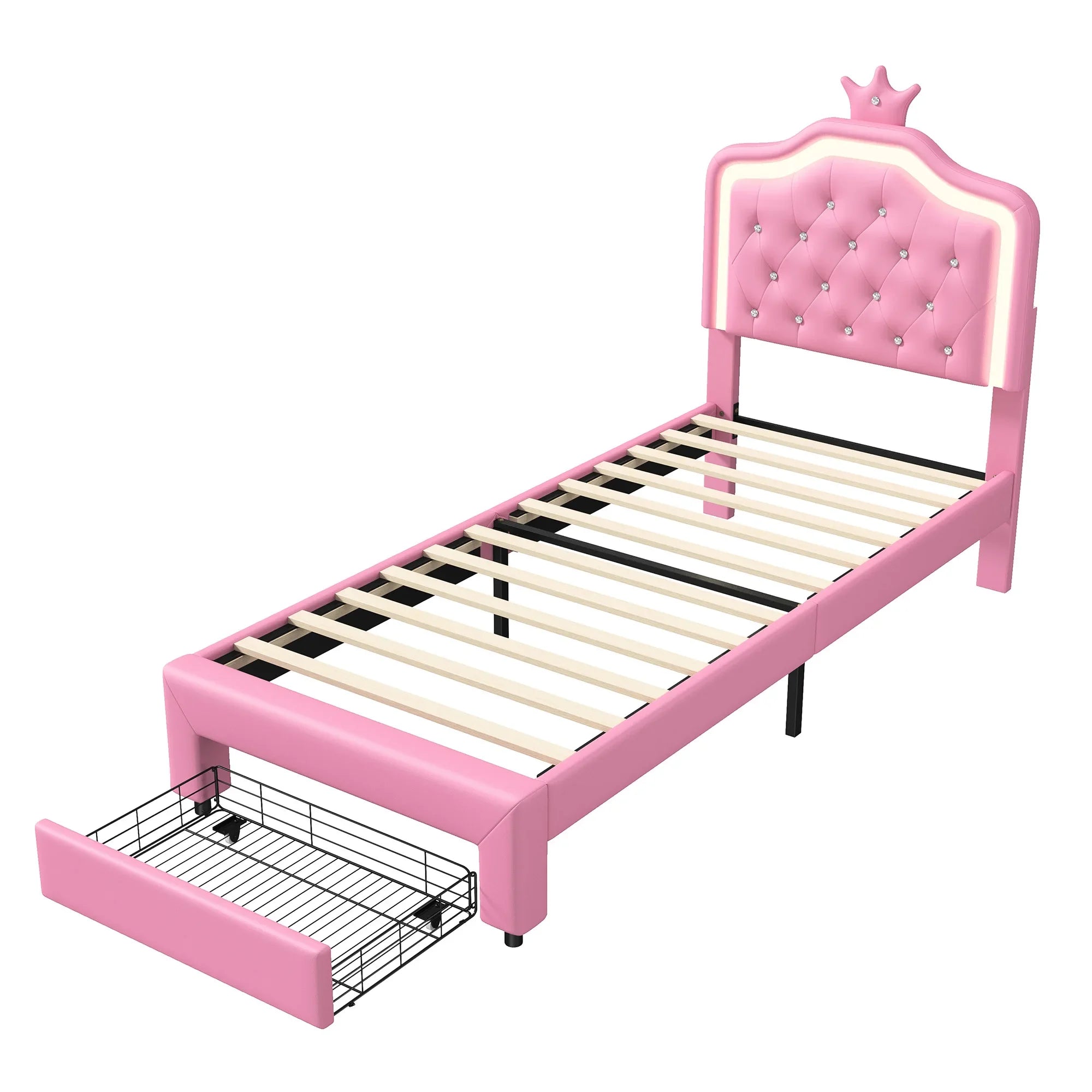 Lit 1 place 90x200 – Design princesse avec tiroir de rangement Rose