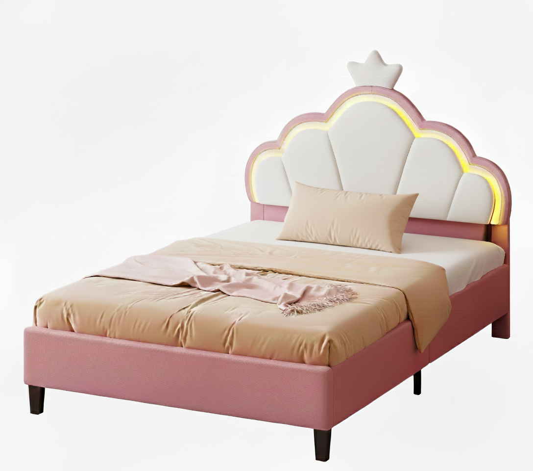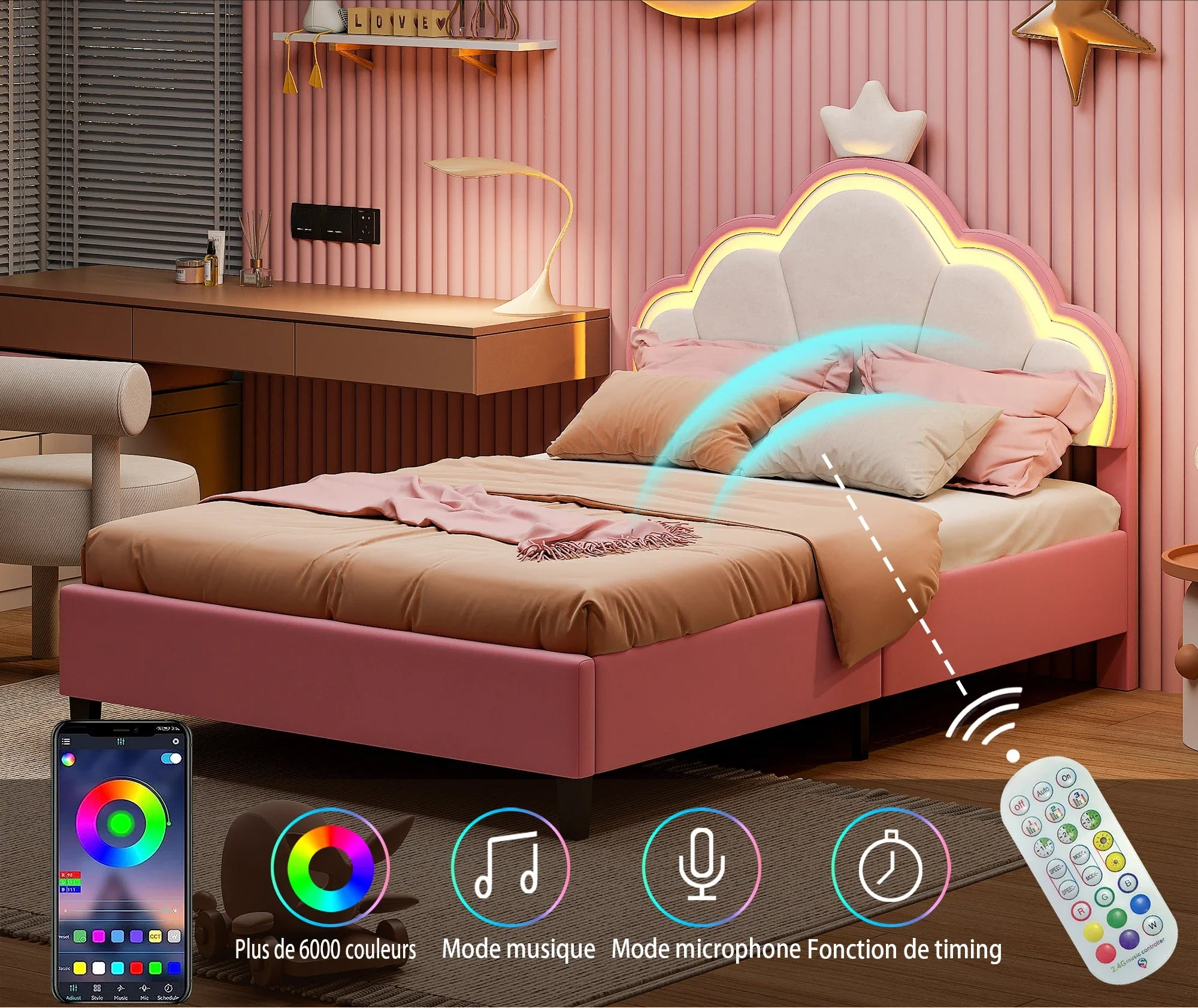 Le design princesse, avec sa tête de lit couronne rétroéclairée LED, crée une ambiance chaleureuse et rassurante. Ce style décoratif en fait aussi une alternative élégante aux modèles aux lits plus simples, tout en restant dans une catégorie lit 1 place pas cher mais qualitative.