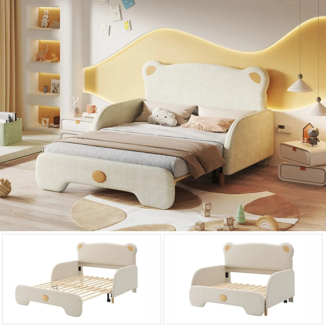 Lit 2 places 140x200 enfant – Design ours en velours beige