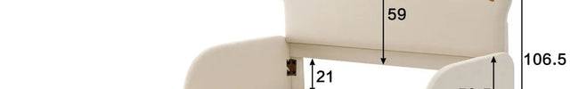 Sa structure solide repose sur des lattes en bois qui assurent un maintien fiable du matelas. Le revêtement en velours beige apporte douceur, confort tactile et un rendu esthétique haut de gamme. Les bords arrondis et les rebords latéraux renforcent la sécurité, un avantage essentiel dans une chambre enfant.