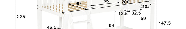 Le design cabane blanc et les lignes épurées s’accordent facilement avec une chambre moderne ou scandinave. Les garde-corps hauts sécurisent le couchage supérieur, tandis que la structure ouverte laisse passer la lumière pour un rendu visuel léger et chaleureux.