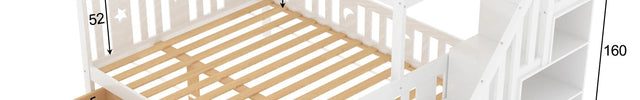 Lit cabane superposé 90x200 et 140x200 – Modèle blanc avec barrière & escalier rangement