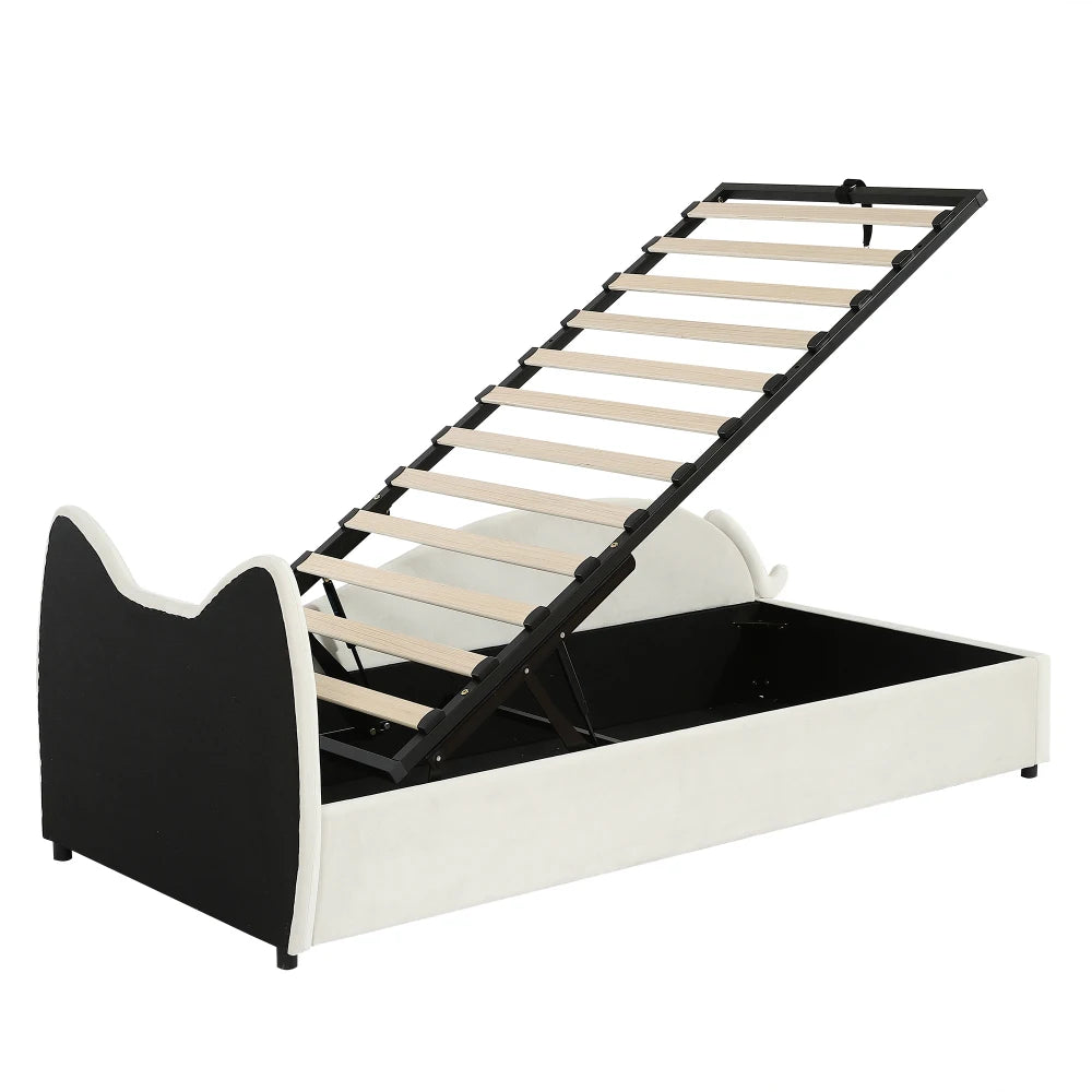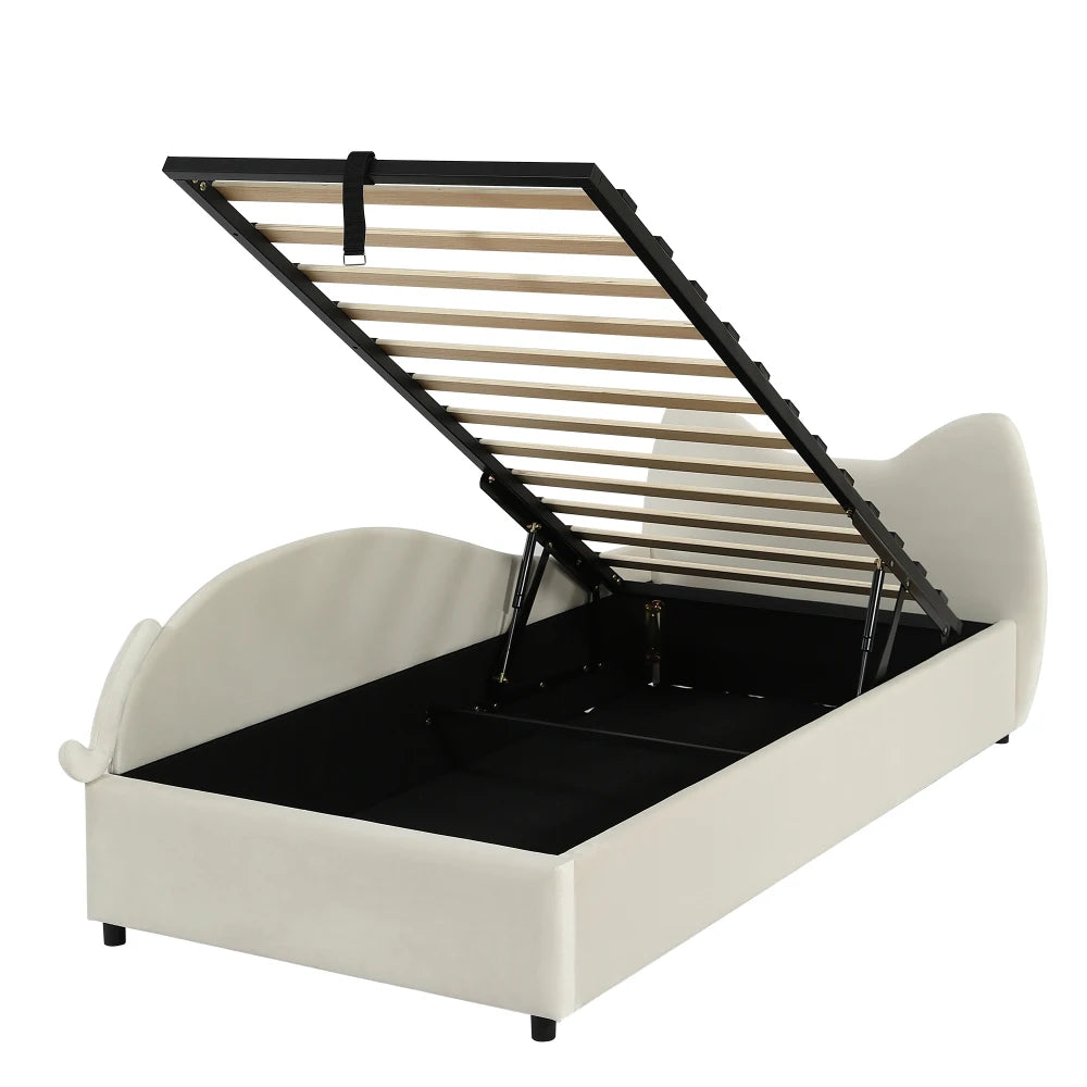 Lit coffre 1 place 90x200 avec rangement – Design chat en velours beige