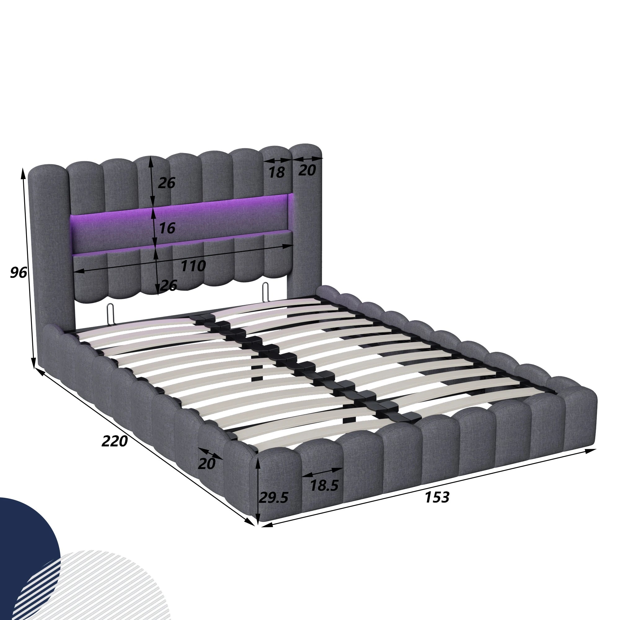 Un lit coffre moderne avec LED, port USB et grand rangement sous le sommier.