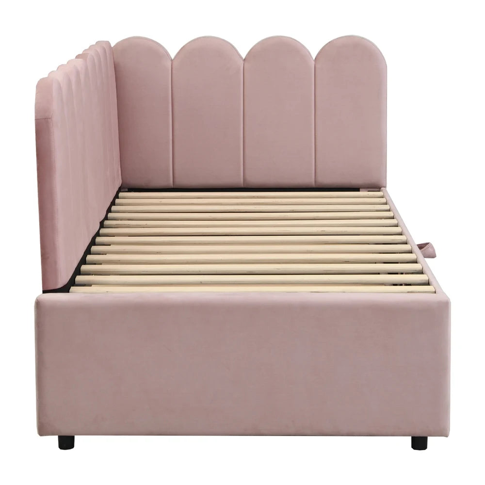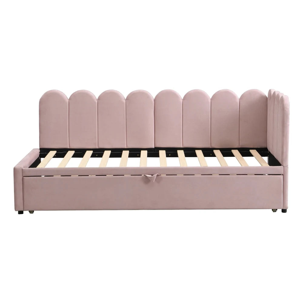Lit gigogne 1 place 90x190 extensible – Velours rose design pétale