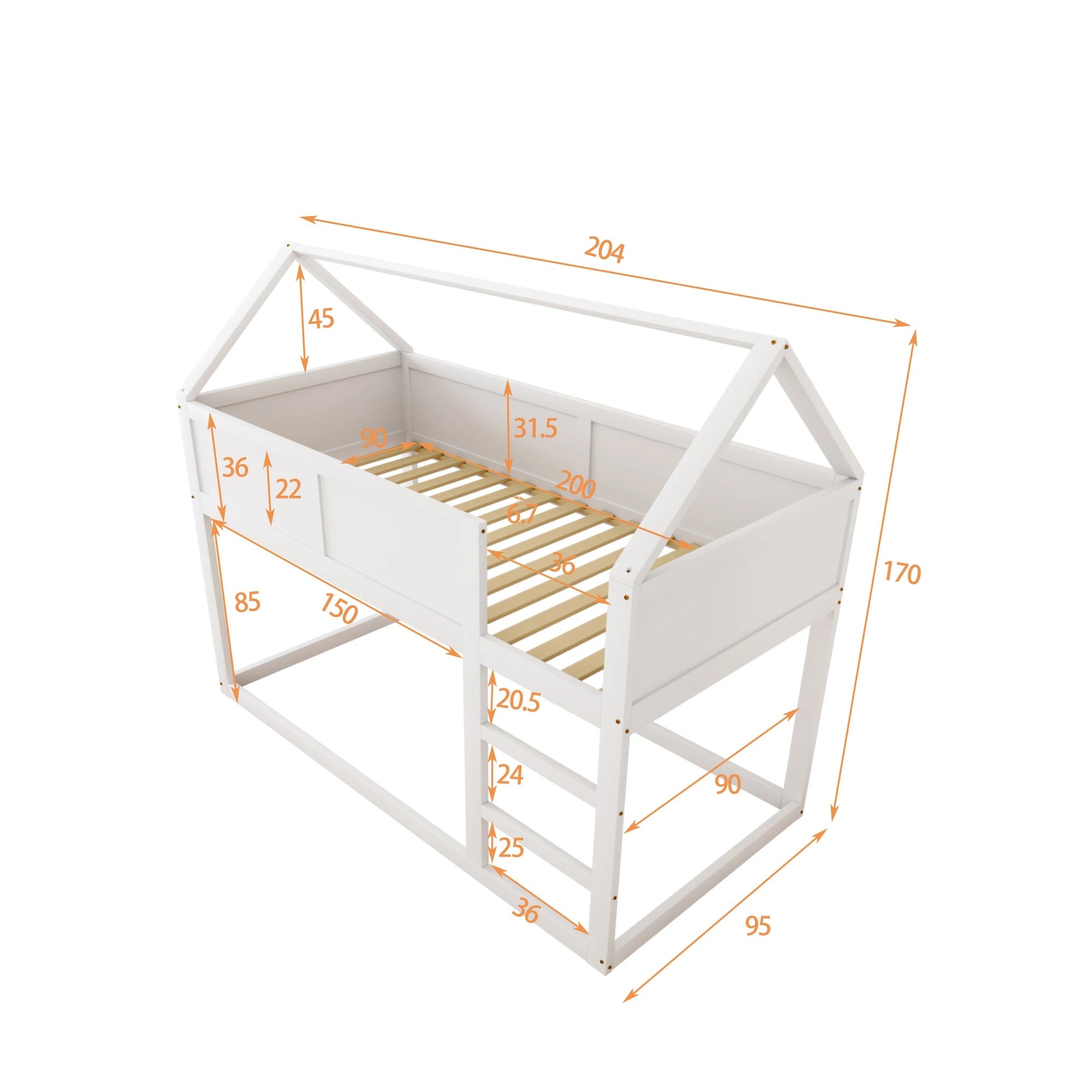 Fabriqué en bois massif, ce modèle assure solidité, sécurité et longévité. La structure stable supporte jusqu’à 120 kg et accueille facilement un matelas 90x190 ou 90x200 avec une hauteur conseillée de 12 cm pour un couchage confortable.