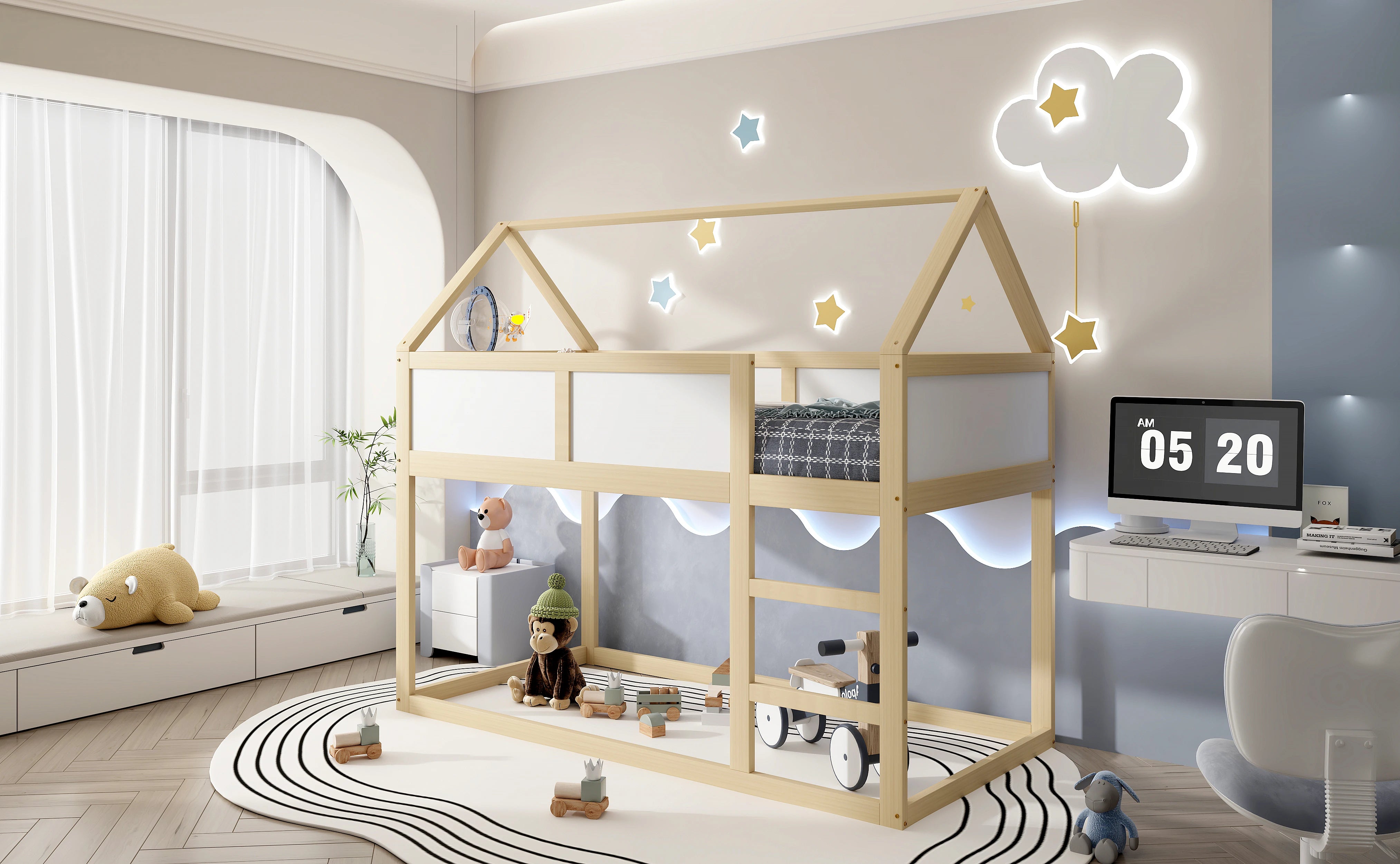 Son design moderne couleur bois et blanc permet de l’intégrer dans n’importe quel style de décoration. Le dessous libre peut devenir un coin lecture, un espace créatif ou un rangement supplémentaire, parfait pour garder une chambre bien organisée. Un excellent choix pour un lit mezzanine bois, un lit mezzanine avec rangement ou un lit destiné à optimiser l’espace au quotidien.