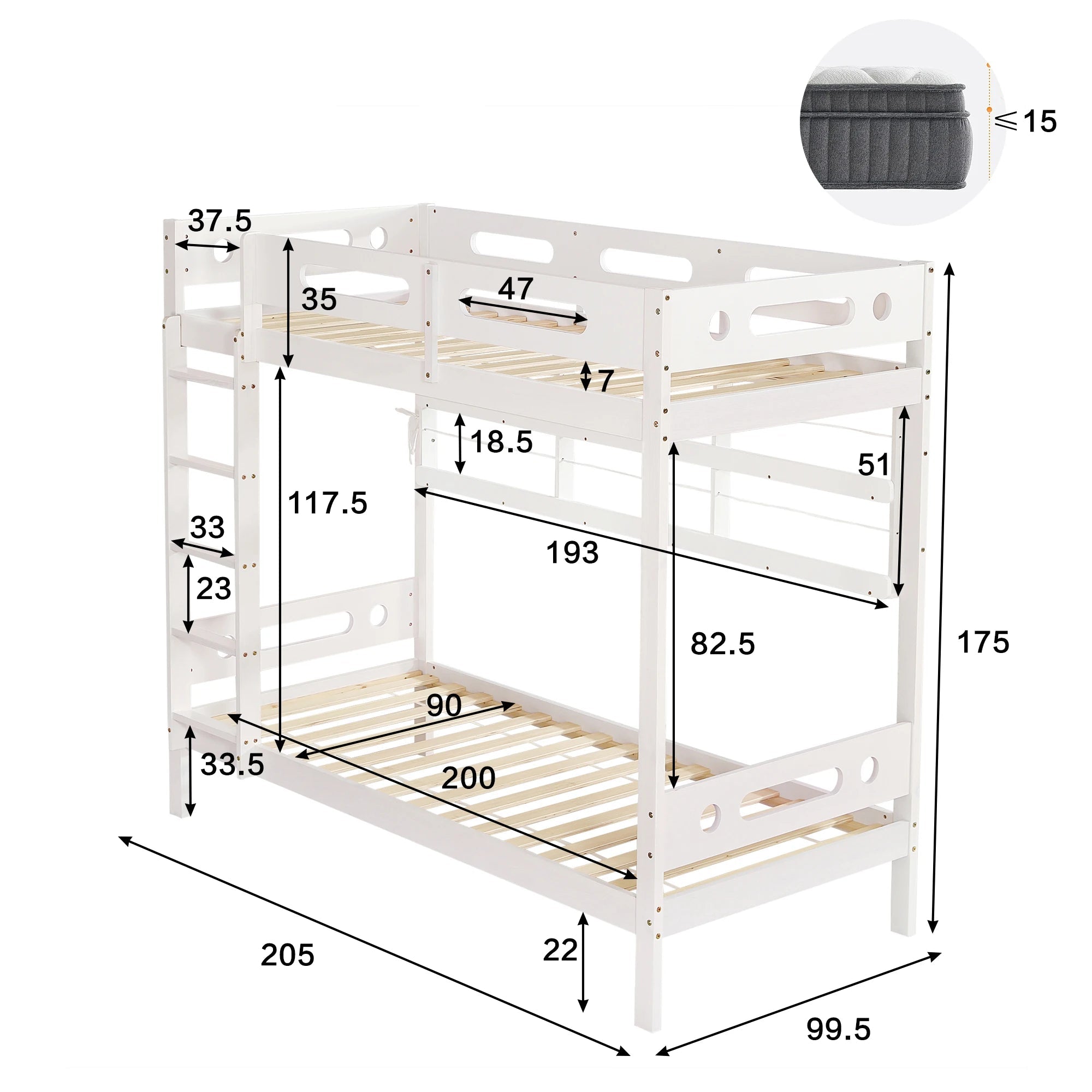 Oui, les deux couchages acceptent un matelas 90x200 (ou 90x190 compatible).