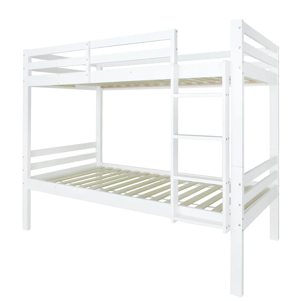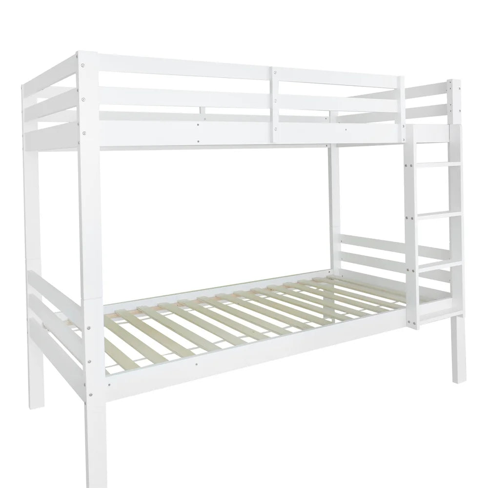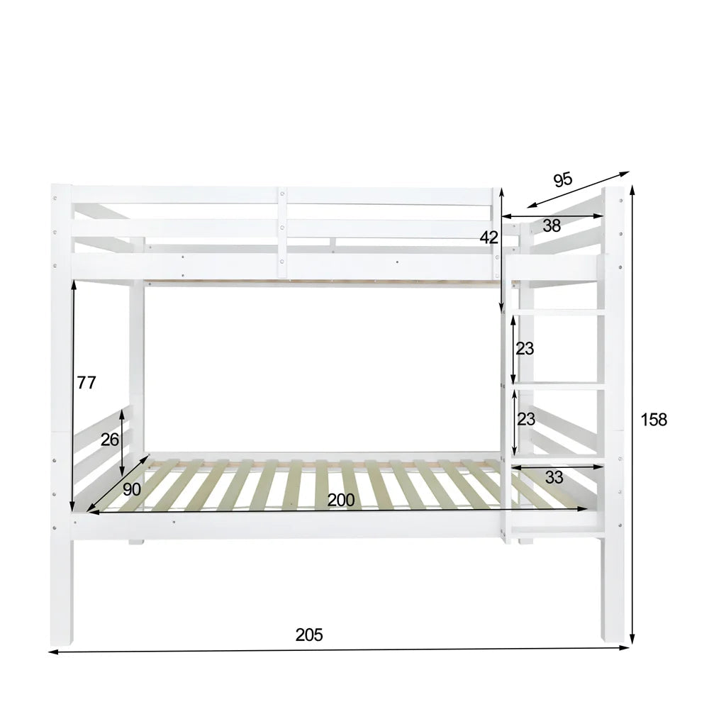 Lit mezzanine 2 lits de 1 place 90x200 – Bois blanc avec échelle et lits séparables