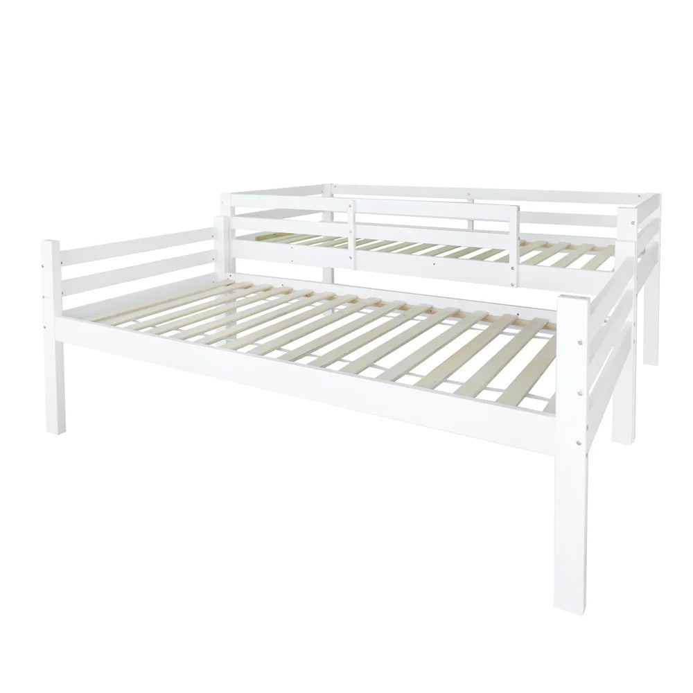 Adapté aux besoins évolutifs, ce modèle peut être facilement séparé en deux lits simples 90x200, idéal pour réaménager une pièce ou accueillir deux enfants dans des espaces distincts. Le design blanc moderne illumine la chambre et se marie avec tous les styles.