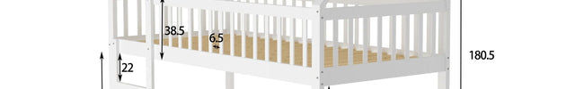 La structure en bois massif garantit stabilité et durabilité. Les deux niveaux sont équipés de barrières hautes pour sécuriser le sommeil, et l’échelle latérale permet un accès simple au couchage supérieur. Compatible 90x190 et 90x200, ce modèle assure une grande flexibilité d’usage.